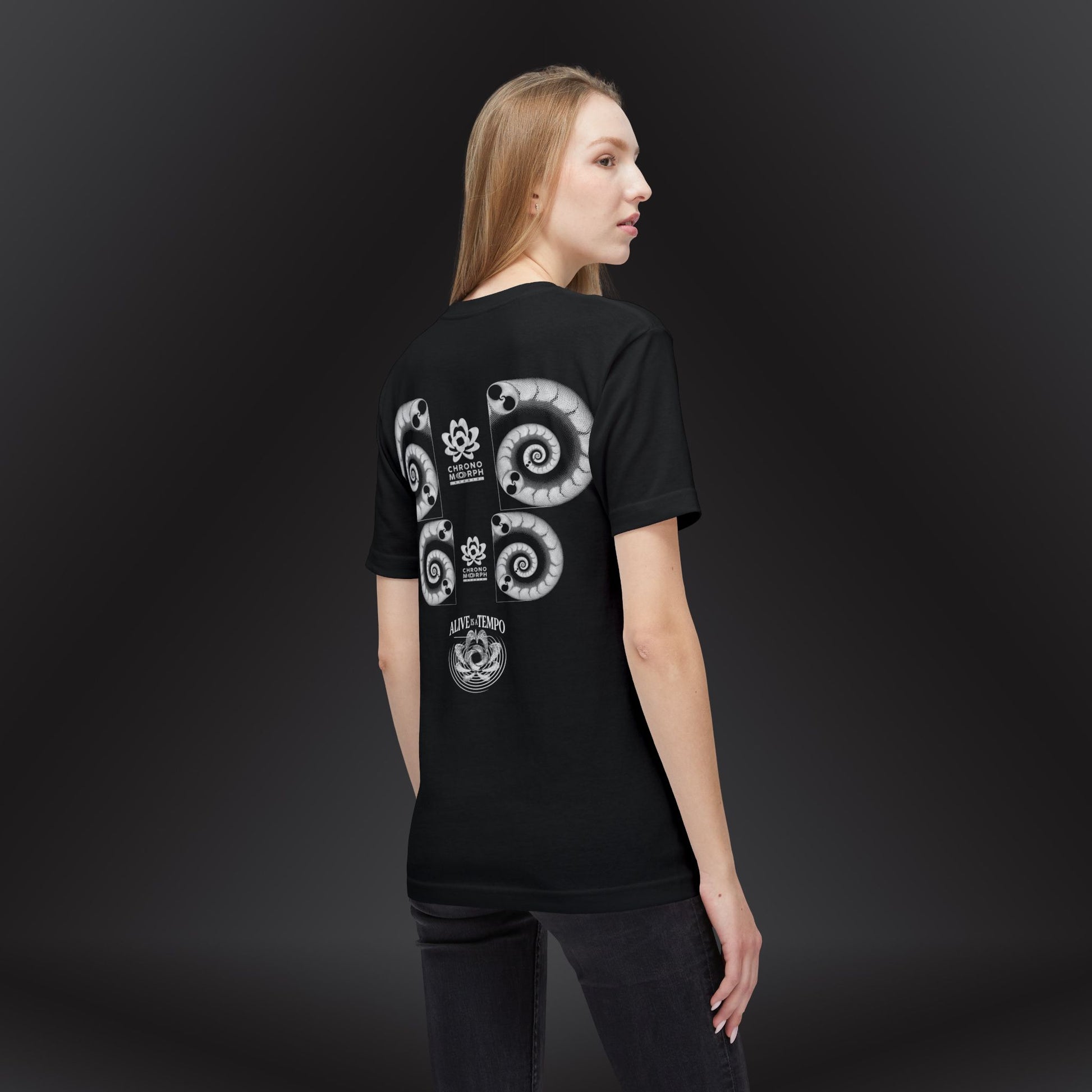 Alive is a Tempo, a statement on rhythm, existence, and creative motion. Designed by Chronomorph Studio, this limited-edition unisex tee fuses digital philosophy with analog rhythm.